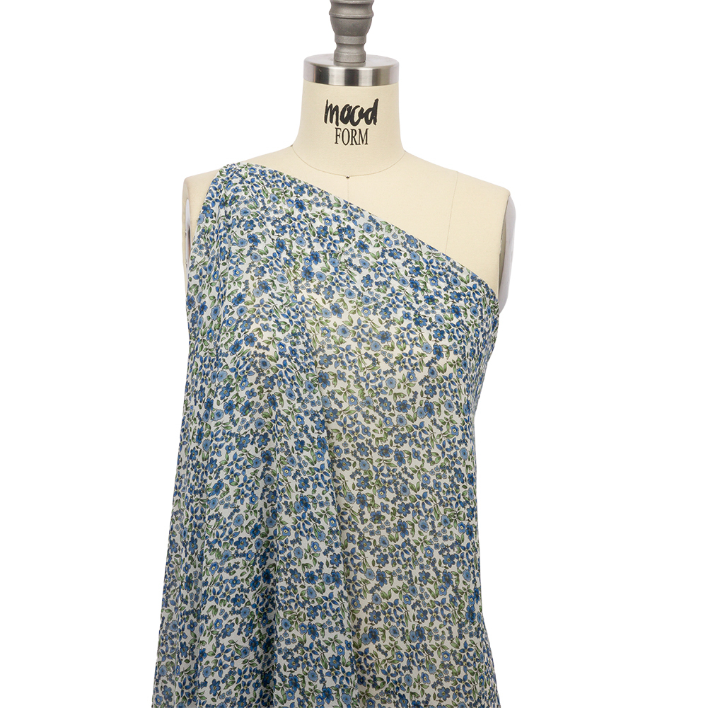 Ivy crawls up the side of the worn cottage as you pad through the garden path—book in arm, tea in hand. Our Mood Exclusive Blue Botanical Stroll Viscose Georgette is a whimsical delight, evoking the serene solitude of a secluded garden. This sheer fabric presents a grainy hand and an effortlessly fluid drape. Wear the summer breeze as an accessory as you don airy pleated skirts and lightweight maxi dresses for casual brunches, formal weddings, and everything in between.Explore Mood’s flower shop: The Secret Garden Collection is an aromatic assembly of bouquets and fields and gardens, sprawling with life and buzzing with color. Get picking!