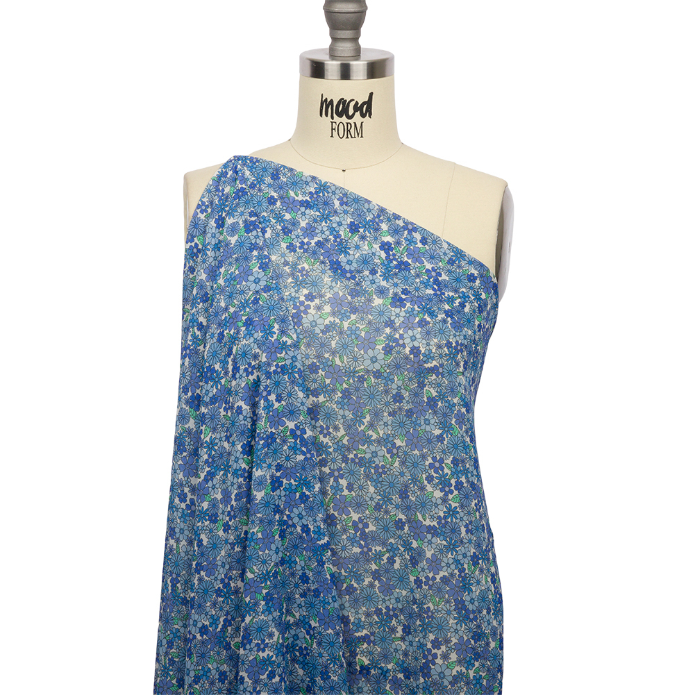 The power of flowers is timeless. Evoke feelings of peace, balance, and vitality with our Mood Exclusive Blue Strawberry Fields Viscose Georgette; a groovy arrangement of blue florals. This sheer fabric presents a grainy hand and an effortlessly fluid drape. Wear the summer breeze as an accessory as you don airy pleated skirts and lightweight maxi dresses for casual brunches, formal weddings, and everything in between.Explore Mood’s flower shop: The Secret Garden Collection is an aromatic assembly of bouquets and fields and gardens, sprawling with life and buzzing with color. Get picking!