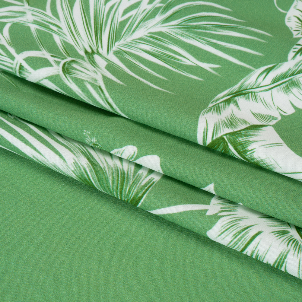 Viscose Woven Print - Green and White Tropical Leaves - Mood Exclusive Living Museum