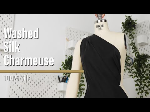 Day to night, create versatile pieces with this 19 momme Black Washed Silk Charmeuse. Featuring a luxuriously soft hand and fluid drape, its matte finish is ideal for subtle silk looks. Suggested Projects: Dresses, Skirts, BlousesContent: 100% SilkStretch: NoneOpacity: Mostly OpaqueFrom days in the office to restaurant date nights, this silk charmeuse adds endless elegance to any occasion. Washed, this charmeuse retains a matte face and an opposing satin face with just a slight sheen. With its luxuriously soft hand and fluid drape, create delicate, flowing dresses, slitted maxi skirts, and fitted blouses. Mostly opaque, a lining is suggested for complete opacity and comfort.