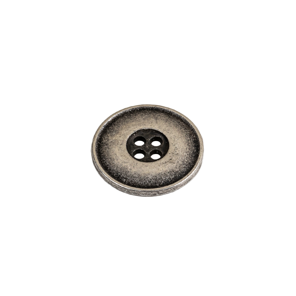 Weathered Silver Narrow Rim Low Convex 4-Hole Metal Button - 24L/15mm