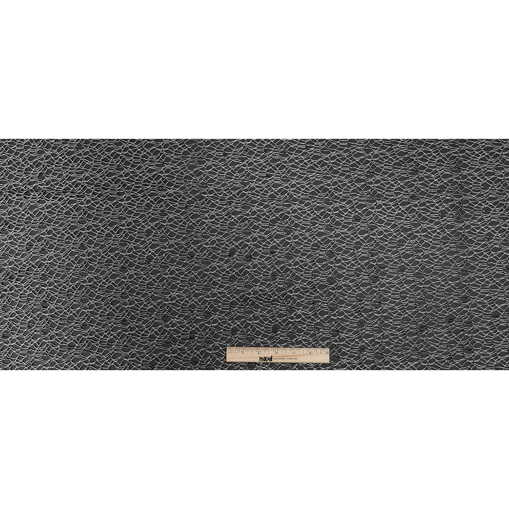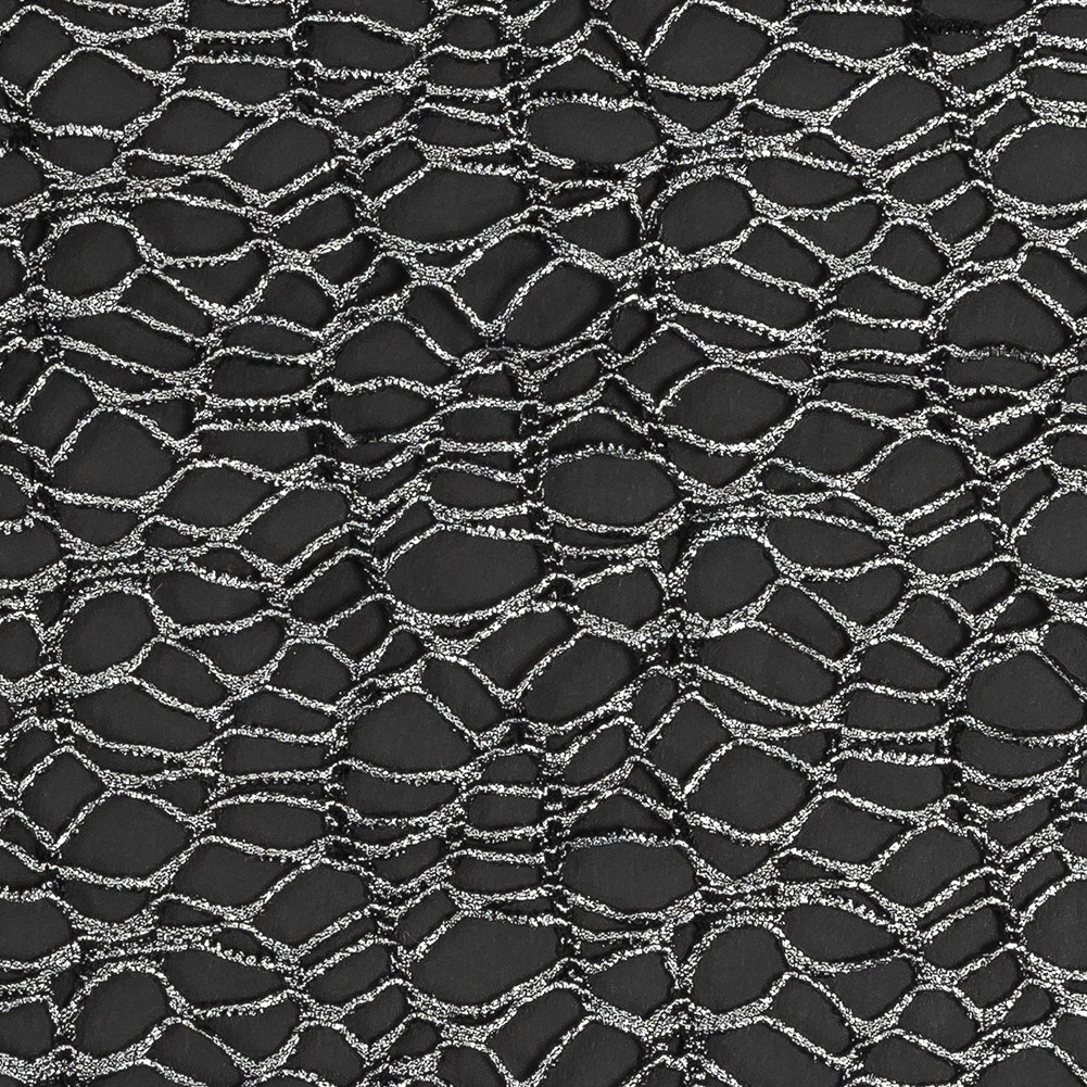Webbed Guipure Lace - Black with Metallic Silver Foil