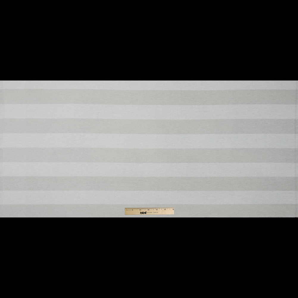 Beachy, minimal and airy are just a few ways to describe this stunning White and Beige Awning Striped Knit Pique. A perfect addition to any resort line, this tactile pique features a bold stripe despite its cool neutral tones. It falls with ease, but has a stiffer drape that may be applied to beach cover-ups, light jackets and avant-garde tunics. Thin and lightweight, it is breathable allowing the spring/summer breeze to flow through. Sheer, a lining may be desired in some applications. Note that this pique does not stretch much through the weft.