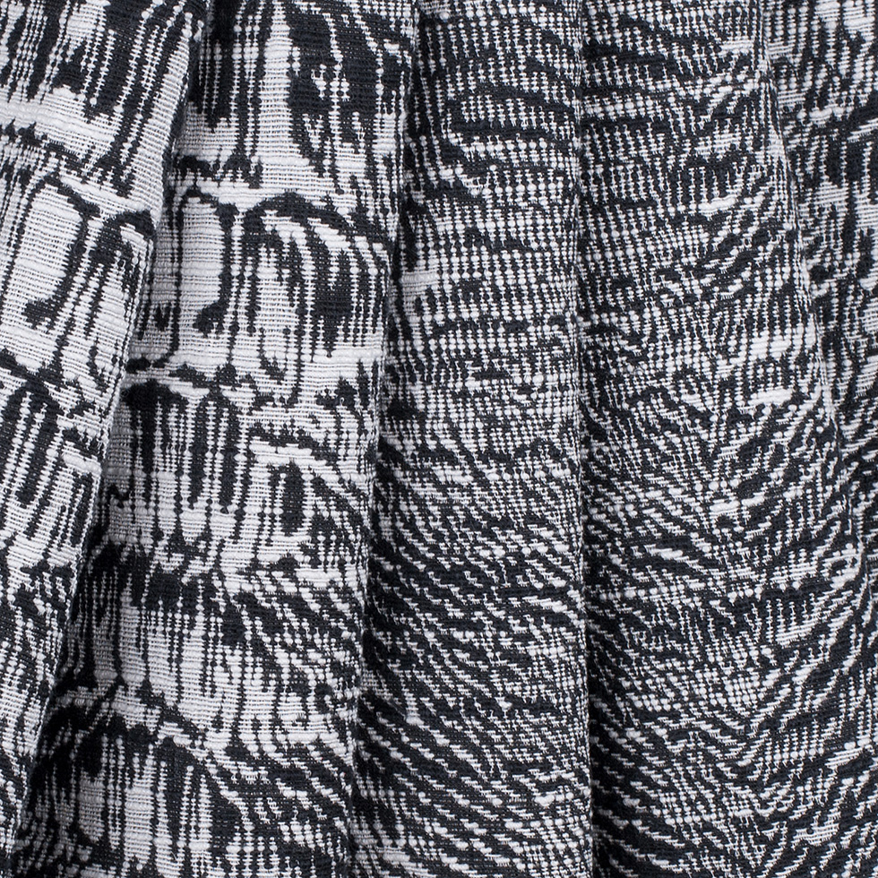 White/Black Abstract Stripes Slubbed Cotton-Poly Woven