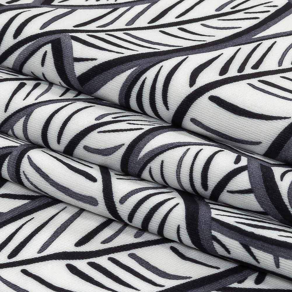 White, Folkstone Gray and Black Leaves UV Protective Compression Swimwear Tricot with Aloe Vera Microcapsules