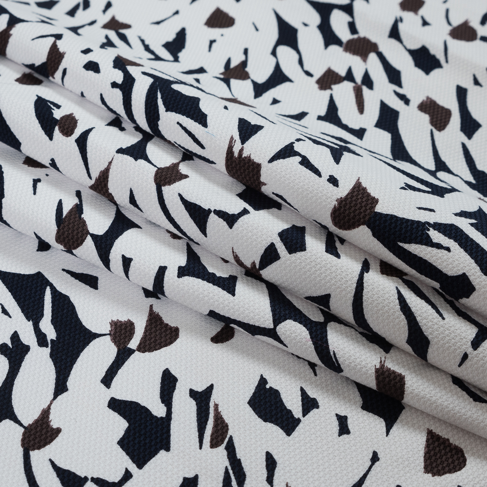 Dress for the occasion in this White, Navy and Brown Floral Stretch Cotton Pique.