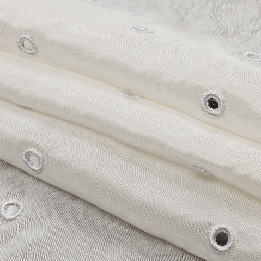 White Silk Taffeta with Embroidered Mirror Polka Dots