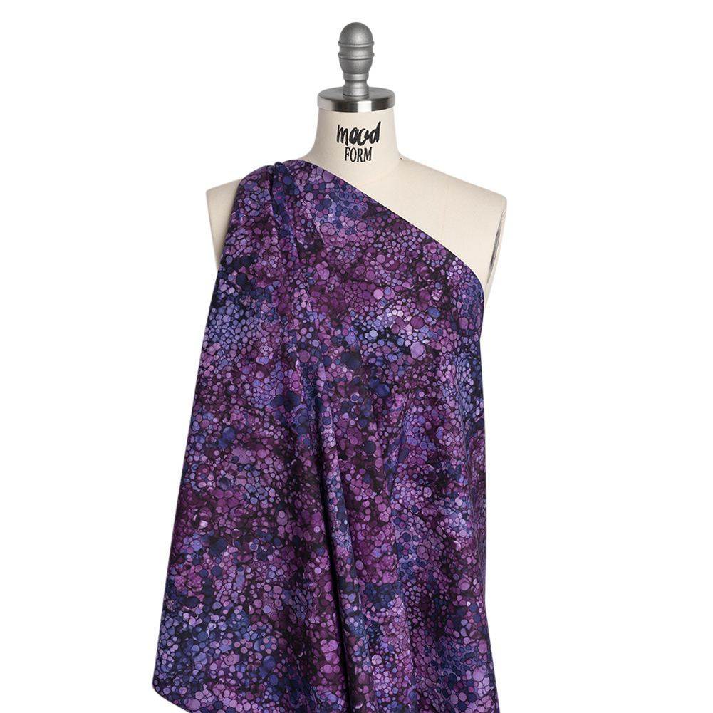 Enchant with every fold and flutter of this Amethyst Bubbles 108” Wide Quilting Cotton—featuring an extra-wide width, smooth hand, and supple drape.Suggested Projects: Dresses, Shirts, Jackets, Quilts, Light Home DecorContent: 100% CottonStretch: NoneOpacity: Slightly TranslucentIdeas easily bounce and bubble up from this purple and indigo quilting cotton. With a smooth hand, supple drape, and no stretch, this 108-inch-wide fabric is crafted for intricate quilt work—a stable weave and silky finish are perfect for anything from classic piecework and wholecloth quilting to appliqués and art quilts to English paper piecing—yet it effortlessly lends itself to lightweight home décor, craft, and fashion projects, too. Plus, the extra-wide width is perfect for backing bed-size quilts with ease, no piecing required.Whether you’re designing breezy shift dresses, gathered patchwork skirts, or crisp button-downs and shorts, this fabric brings a touch of elegance to every stitch—or dream bigger with flowing floor-length gowns or sharply tailored jackets and trousers, perfect for an evening out. Slightly translucent, a lining is recommended for added opacity and a refined finish.