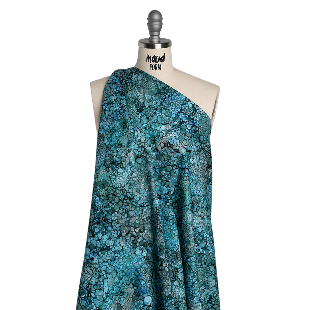 Take a deep breath and dive into this Tranquility Bubbles 108” Wide Quilting Cotton—featuring an extra-wide width, smooth hand, and supple drape.Suggested Projects: Dresses, Shirts, Jackets, Quilts, Light Home DecorContent: 100% CottonStretch: NoneOpacity: Slightly TranslucentIdeas easily bounce and bubble up from this aqua, teal, and green quilting cotton. With a smooth hand, supple drape, and no stretch, this 108-inch-wide fabric is crafted for intricate quilt work—a stable weave and silky finish are perfect for anything from classic piecework and wholecloth quilting to appliqués and art quilts to English paper piecing—yet it effortlessly lends itself to lightweight home décor, craft, and fashion projects, too. Plus, the extra-wide width is perfect for backing bed-size quilts with ease, no piecing required.Whether you’re designing breezy shift dresses, gathered patchwork skirts, or crisp button-downs and shorts, this fabric brings a touch of elegance to every stitch—or dream bigger with flowing floor-length gowns or sharply tailored jackets and trousers, perfect for an evening out. Slightly translucent, a lining is recommended for added opacity and a refined finish.