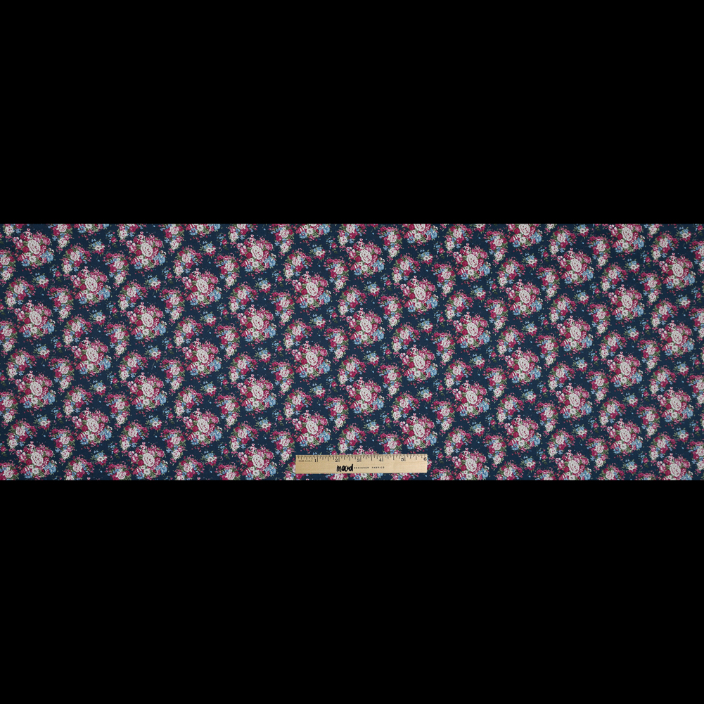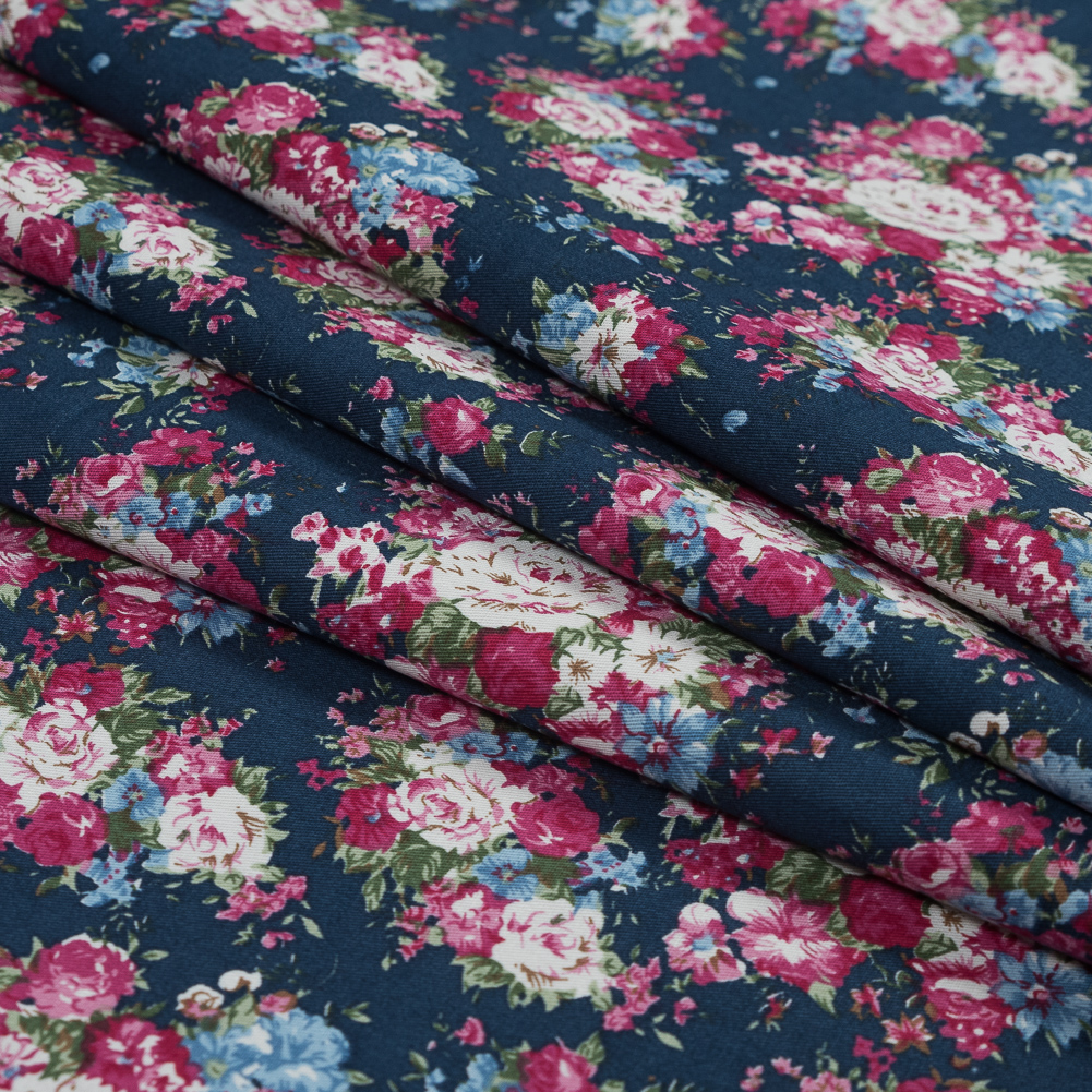 Wild Rose Pink and Insignia Blue Floral Cotton Twill
