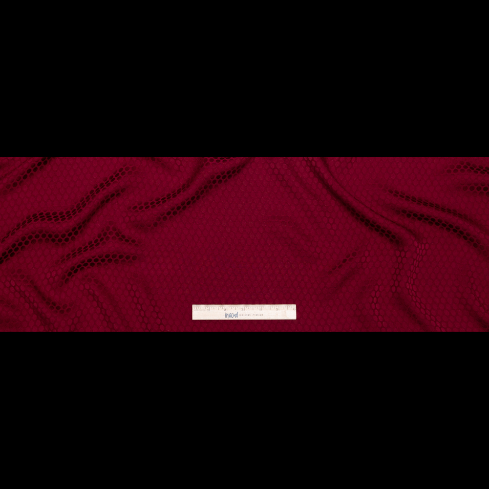 Party hard in our Circles Rayon Jacquard in Wine knowing that if anything gets spilled, it will simply blend in! Teasing one with a supposedly stiff but sculptured body, this Jacquard, in reality, showcases a drape both flexible and billowy. Unleashing a sheen that one wants to be seen (in)—no matter the scene-ry, these tonal shapes all circle back to its construction: Having been woven on a Jacquard Loom, these intricate patterns are actually woven within the weave, and, therefore, create the slightly raised, reversible surface. Transform this very versatile medium into countless silhouettes—for many occasions. Design formal wear and semi-casual garments, office-friendly separates, and more. We envision roomy dresses with boxy jackets to match or trendy blazer dresses paired with wide-leg trousers. Of a medium weight and on the cusp of opaque, consider incorporating china silk or a polyester lining to encourage true opacity and/or give more structure or weight to your design.