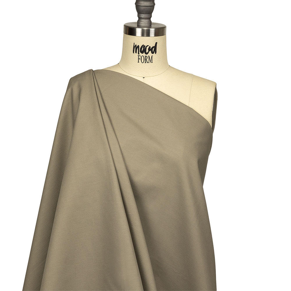 Sew up a capsule wardrobe in a snap with this Winter Twig Shadow Stripe Cotton Broken Twill! A broken twill, or herringbone, weave runs throughout this greenish-beige fabric, giving it the illusion of tiny stripes. Structural and somewhat heavy in drape, yet smooth and cool in hand, create everything from boxy flared skirts to lightweight jackets and beyond. Opaque, a lining may be desired for a professional look on some projects but isn't always necessary.