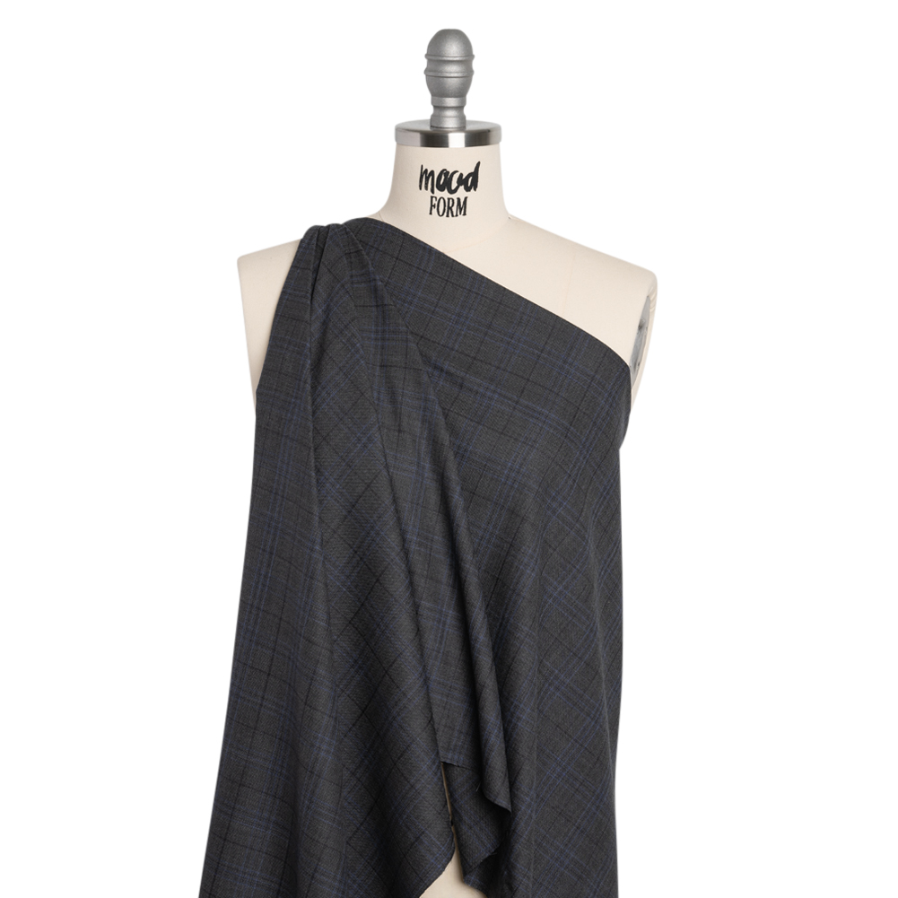 Exude the quiet luxury of academia in this Plaid Wool and Silk Suiting, featuring a gently slubbed hand, fluid drape, and light weight.Suggested Projects: Pants, Shirts, Dresses, SkirtsContent: 52% Silk, 48% WoolStretch: NoneOpacity: Mostly OpaqueFrom long nights in the library to ambling across a college campus in the brisk autumnal chill, this gray and blue plaid suiting is the ideal companion. Blended silk and wool fibers create a softly lustrous quality, with a slubby, lightweight texture and light, bouncy drape. Be presentation ready in a tailored blazer and skirt set, enjoy a cup of tea with friends in straight leg trousers, or recite poetry in a boat-neck mini dress—the sky’s the limit! Mostly opaque, a lining may be desired depending on application.