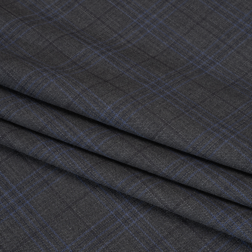 Wool and Silk Suiting - Gray and Blue Plaid - Deadstock