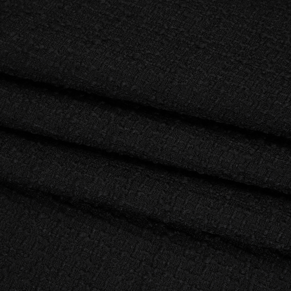 You’ll go black to this Black Wool Blend Boucle every time you dress for work—featuring a softly tactile hand and supple drape.Suggested Projects: Jackets, Dresses, Skirts, TrousersContent: 95% Wool, 5% PolyamideStretch: NoneOpacity: TranslucentLuxury and comfort come together in perfect symphony with this black wool blend boucle. In classic boucle fashion, this fabric lends itself well to casual and formal garments alike, it’s coloring a blank canvas for your creative output. Use its slightly weighted, supple drape to create luxurious jackets to wear against a winter wonderland, chic Jackie dresses, pencil skirts, and flowy cardigans. Translucent, a lining is recommended for opacity, comfort, and warmth.