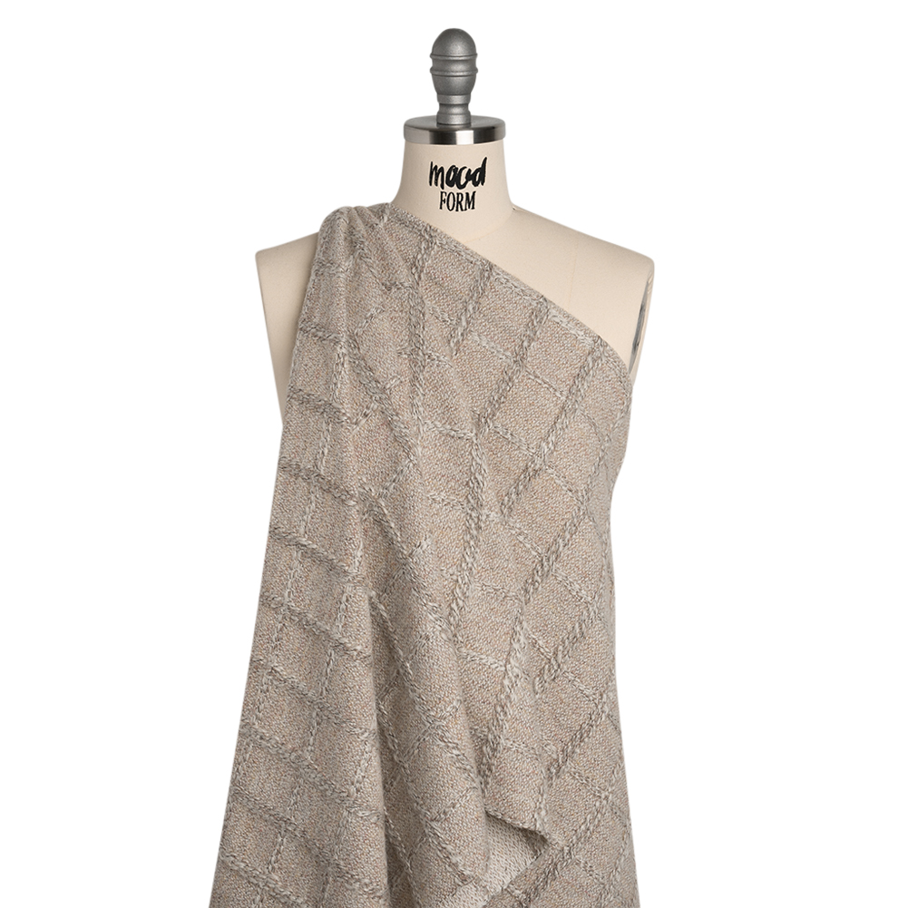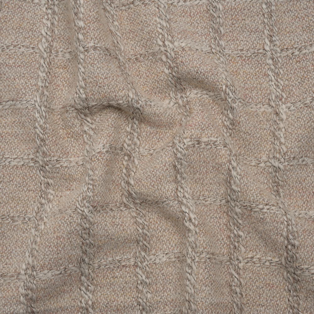 Sip a steaming mug of hot cocoa and keep the cold away in this Raised Windowpane Checks Wool Blend Boucle Tweed—featuring a soft, tactile hand and supple drape.Suggested Projects: Coats, Dresses, Jackets, SkirtsContent: Wool, AcrylicStretch: NoneOpacity: OpaqueBundle up against the winter chill in this cream and taupe raised windowpane check tweed. Bouclé delivers, as always, looped yarn and a soft hand, bringing dimension to your semi-casual and formal wardrobes. It features a supple drape and a soft, tactile hand, perfect for dressing up with Chanel-inspired coats or dressing down with chunky ponchos. Opaque, we suggest a lining for structure and warmth.