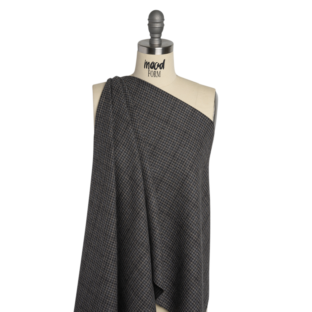 Bring Scottish patterns into your wardrobe with this Plaid Wool Blend Twill. Featuring a malleable drape, soft hand, and medium weight, it’s perfect for those cool and breezy remote locales.Suggested Projects: Coats, Pants, Dresses, SkirtsContent: 70% Wool, 30% PolyesterStretch: NoneOpacity: TranslucentWarm gray and beige houndstooth plaid runs across the twill, inspiring you to explore the winding streets and aged architecture of Edinburgh. Complete with a durable wool blend construction, this fabric has a malleable drape and smooth hand that lends itself well to structured applications. With its elegantly rustic pattern, create structured blazers, trousers, and vests to dress up your work attire, or pleated skirts and sheath dresses for day-to-day wear! Translucent, we recommend incorporating a lining for comfort, dimensional stability, and warmth.