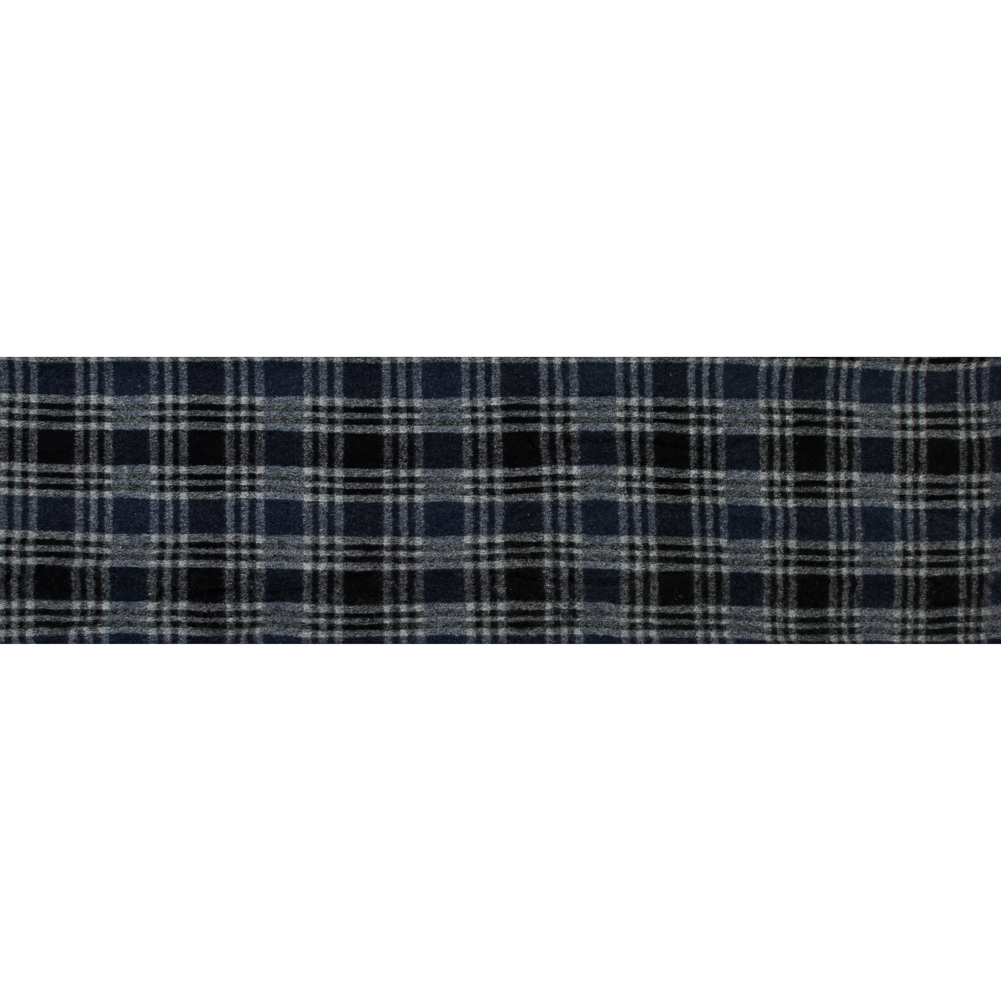 A classic made cool, check out this Navy and White Plaid Wool Knit. Rustic and edgy, the thick knit presents a tactile face and a soft, brushed back. Its plaid is indicative of fall and winter, as is its wool makeup, so get ready to get cozy! Use its slightly structured drape and weft-wise stretch to transform it into fuzzy sweaters, wintry jackets or even dusters. Heavy weight and opaque, a lining is optional.