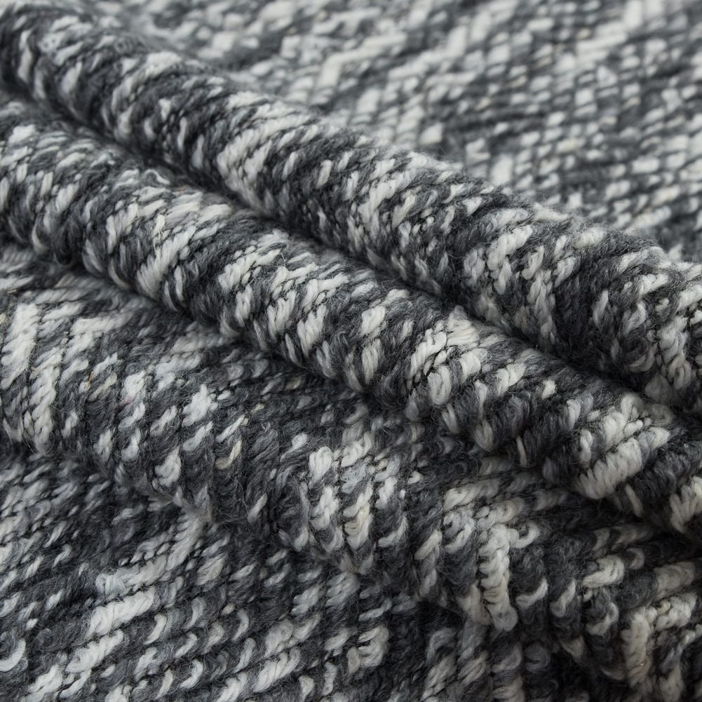 Comfort and cool is what this Gray and White Wool Knit with Zig Zag Loops is all about. Its tactile back makes way for loops of thick yarns as they create a zig-zag pattern across its face. Use the soft knit to create chunky sweaters and jackets, or as a lining for winter coats! It has a flexible drape and a bit of stretch through the weft. Slightly translucent, insert a lining for more opacity if desired.