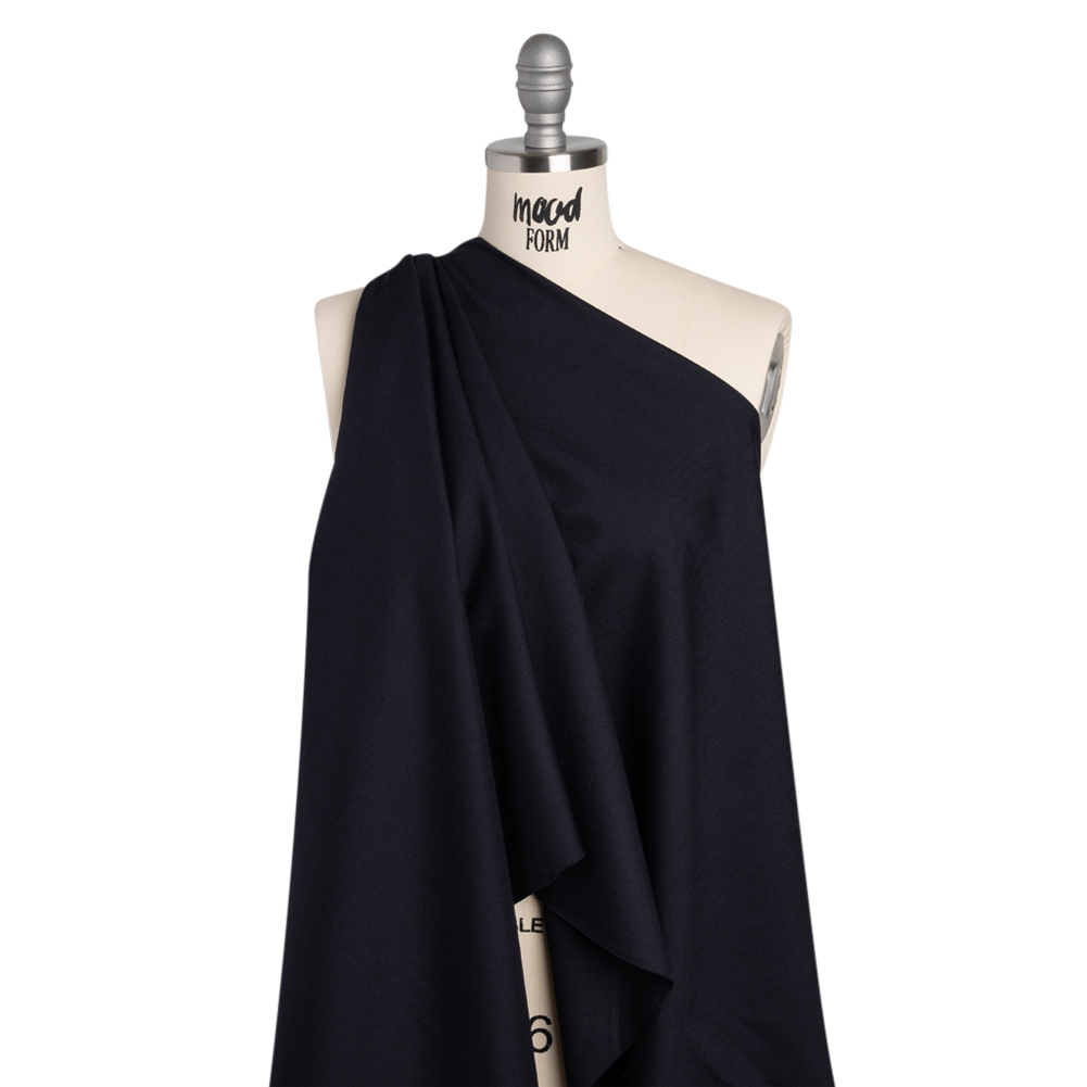 Your walks to work—or class—will be endlessly comfortable in this Navy Blue Birdseye Wool Pique Suiting. With a soft, smooth hand and supple drape, it’s sure to pique your interest.Suggested Projects: Pants, Skirts, Dresses, JacketsContent: 100% WoolStretch: NoneOpacity: Mostly OpaqueBundle up against the autumn chill in this pique suiting. Made out of durable wool and with a navy blue birdseye design—thanks to a pique construction—this fabric has a supple drape and soft, smooth hand that lends itself well to tailored applications. Create tailored jackets, trendy blazer dresses, pleated skirts, straight-leg trousers, and so much more! Though mostly opaque, we recommend incorporating a lining for comfort, dimensional stability, and aid in preventing the fine yarns from unraveling at the seams.