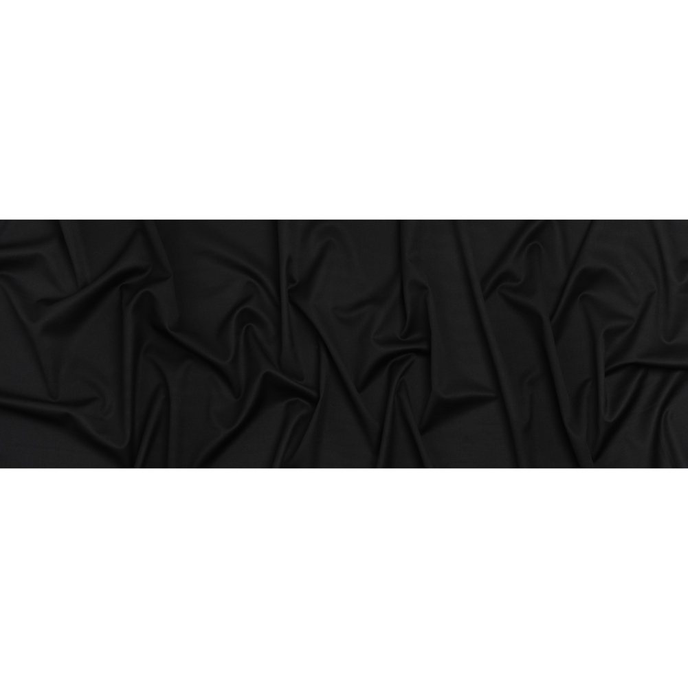 A capsule wardrobe starts with this Black Wool Suiting. With a soft, smooth hand and fluid drape, it’ll quickly become a business-wear staple.Suggested Projects: Pants, Skirts, Dresses, JacketsContent: 100% WoolStretch: NoneOpacity: Mostly OpaqueComplete with a durable wool construction and a black hue, this fabric has a fluid drape and soft, smooth hand that lends itself well to tailored applications. Create tailored jackets, trendy blazer dresses, pleated skirts, straight-leg trousers, and so much more! Mostly opaque, we recommend incorporating a lining for comfort, dimensional stability, and aid in preventing the fine yarns from unraveling at the seams.