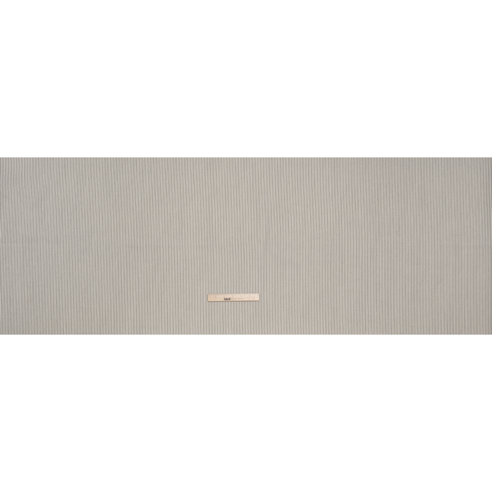 Follow the trail atop this Cream and Black Chalk Striped Wool Twill Suiting to your design destination—featuring a soft, slightly tactile hand and supple drape.Suggested Projects: Blazers, Trousers, Dresses, SkirtsContent: WoolStretch: NoneOpacity: OpaqueBlack chalk stripes race across the cream backdrop of this twill suiting. Harness the natural insulating properties of wool to craft suiting separates that wear well in any season, warm or cool. With its supple drape, this fabric also lends itself beautifully to chic dresses and skirts—equally suited for casual outings or professional settings. Fully opaque, it requires no lining for coverage, though adding one can provide extra structure and a polished, professional finish.
