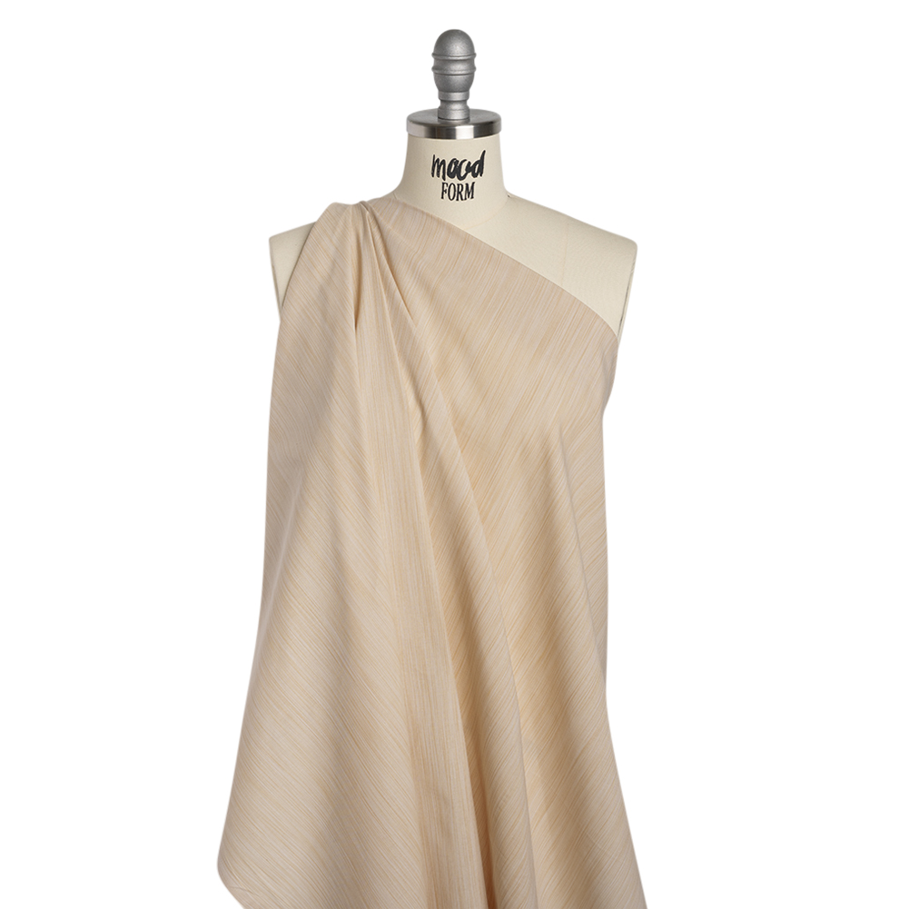 Your designs with this Biscuit Striated Woven Quilting Cotton Fabric will be baked to perfection—featuring a smooth hand and supple drape.Suggested Projects: Skirts, Shirts, Quilts, Light Home DecorContent: 100% CottonStretch: NoneOpacity: TranslucentHead striate out into the summer sun donning this biscuit striated woven quilting cotton. With a smooth hand, supple drape, and no stretch, this fabric is crafted for easy, breezy quilt work—a stable weave and incredibly smooth, lightweight finish making it perfect for anything from classic piecework and wholecloth quilting to appliqués and art quilts to English paper piecing—yet it effortlessly lends itself to lightweight home décor, craft, and fashion projects, too.Whether you’re crafting breezy shift dresses, patchwork skirts full of movement, or relaxed camp shirts and shorts, this fabric channels the essence of summer—warm breezes, sun-drenched days, and easy elegance in every stitch. With its translucence, a lining is recommended to enhance opacity and give your creations a polished, refined finish.