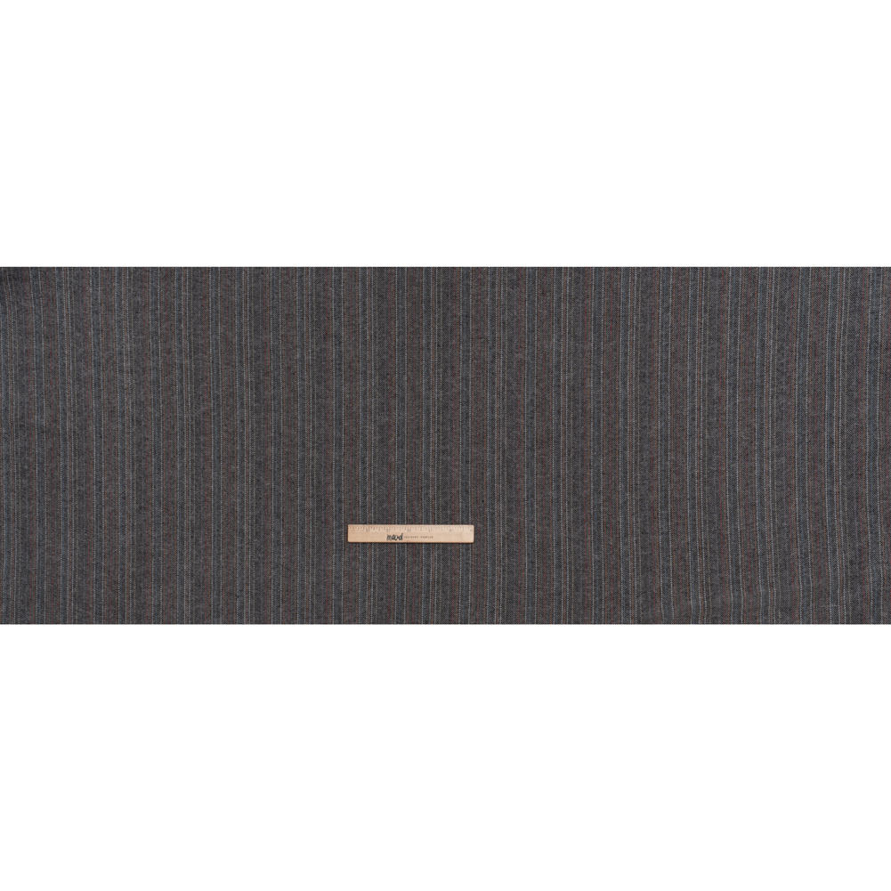 Yarn-Dyed Cotton Twill Flannel - Gray, Sky Blue and Red Pinstripes - Deadstock