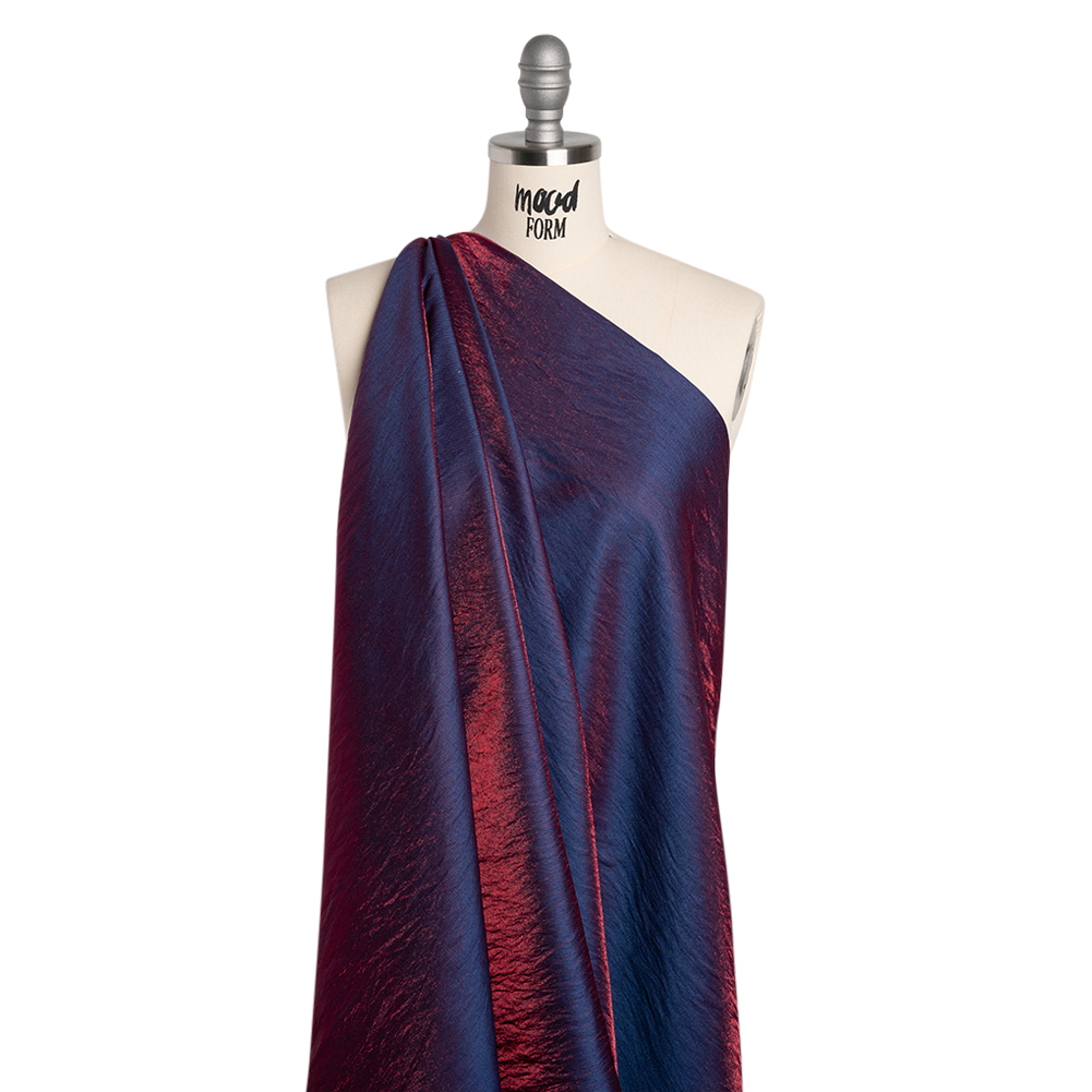 Command every room you step in wearing this Dual Fantasy Royal Blue and Red Iridescent Polyester Dupioni by Yaya Han—featuring a sleek hand and fluid drape.