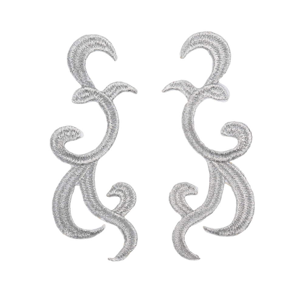 Yaya Han Iron-On Metallic Embroidered Applique Pair - Silver Swirls, 4.25" x 3.25" - Cosplay Collection