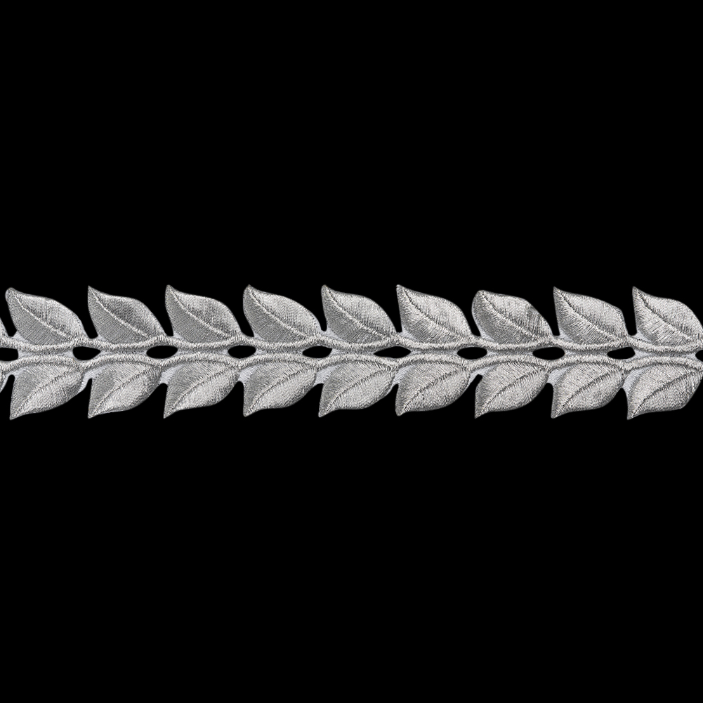Moonlight dances across this Iron-On Metallic Silver Roman Leaves Embroidered Trim by Yaya Han—featuring a tactile hand and malleable drape.
