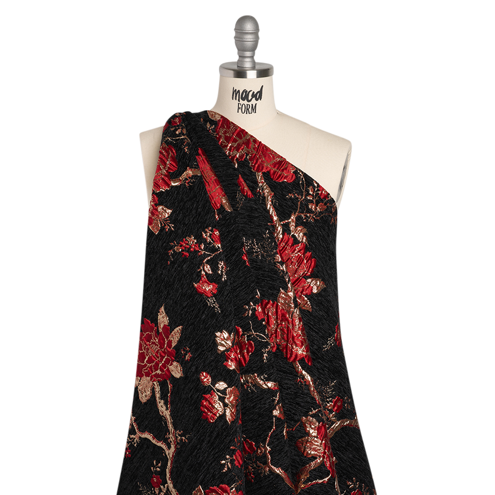 Sit upon your throne in this Black, Red and Gold Floral Metallic Chenille Brocade by Yaya Han—featuring a soft, tactile hand and supple drape.