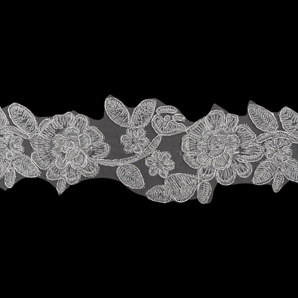 Yaya Han Metallic Corded Embroidered Lace Trim - Silver Fae Floral Vine, 2.5" - Cosplay Collection