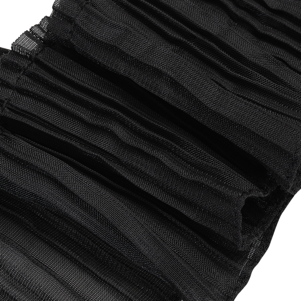 Ruffle your creative feathers with this Black Pleated Ruffle Trim by Yaya Han—featuring a tactile hand and airy drape.Width: 3"Content: 100% PolyesterStretch: NoneStir up a storm at your next con with this black pleated ruffle trim by Yaya Han. Bold, dramatic, and endlessly versatile, this trim is a must-have for historical, regal, gothic, and steampunk-inspired designs. Its airy drape and striking dimension bring an air of mystery and elegance, perfect for adorning cuffs and collars of jackets, dresses, tops, and even embellishing accessories. Let every fold and flutter add depth to your creation—because true style is in the details.