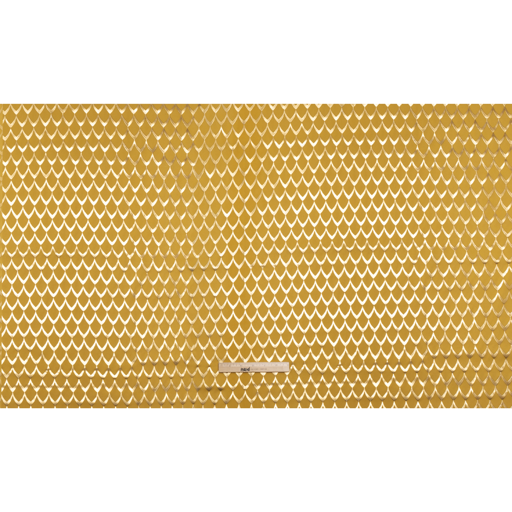 Yaya Han Stretch Polyester Jersey with Vinyl Puff Print - Mustard Yellow and Metallic Gold Dragon Scales - Cosplay Collection