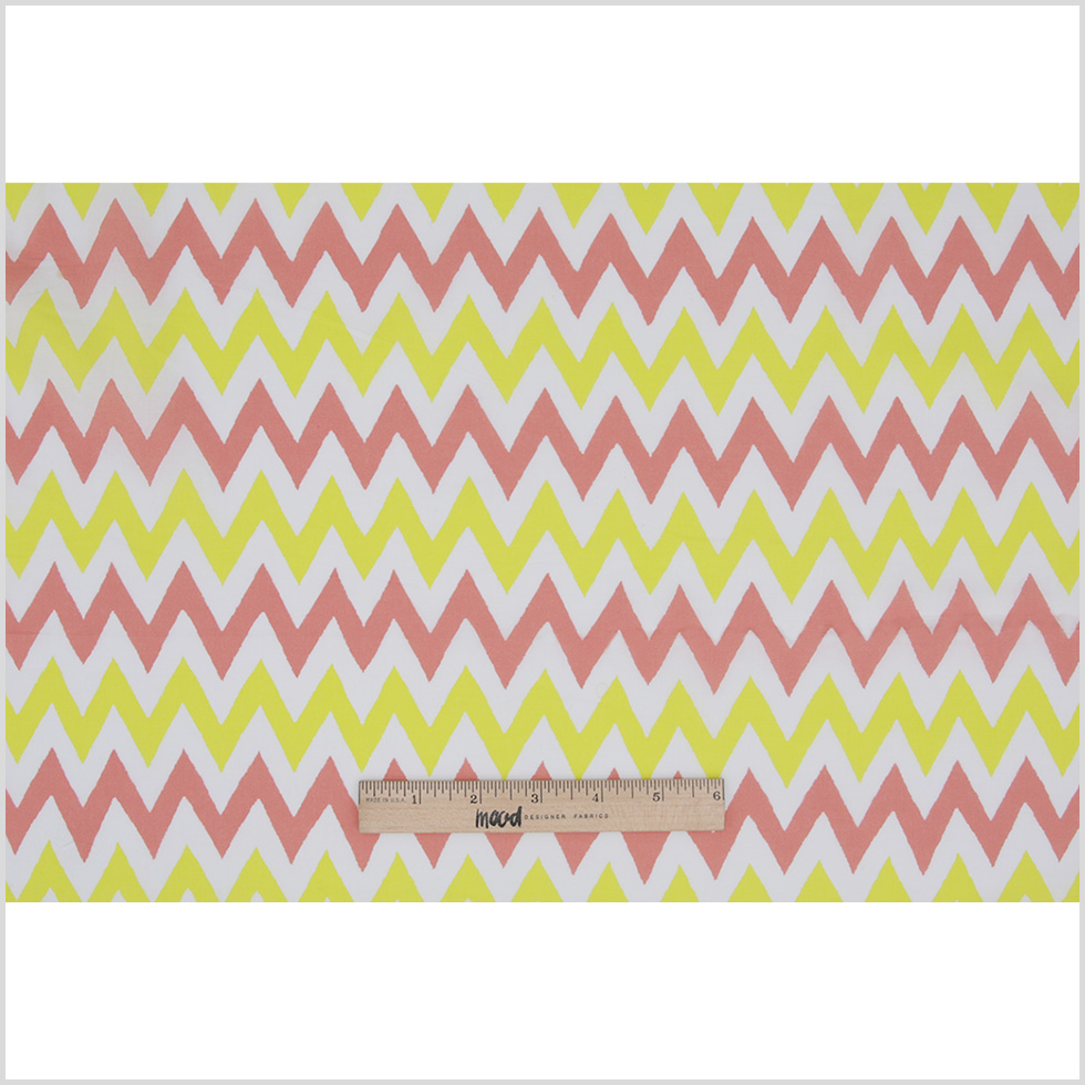 Yellow/Coral/White Zig-Zag Printed Cotton Poplin