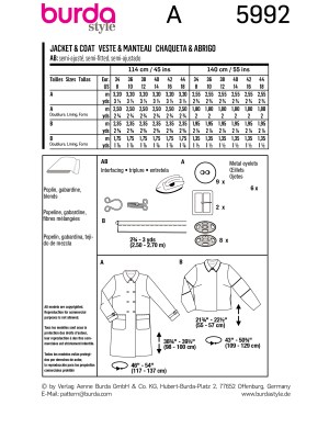 Burda Style sewing pattern Women Jacket & Coat #5992