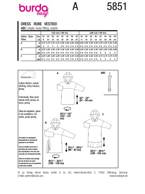 Burda Easy sewing pattern Women Hooded Dresses #5851