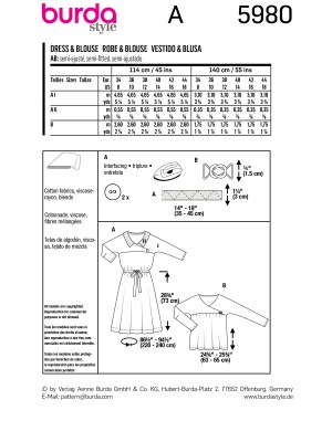 Burda Style sewing pattern Women Dress & Blouse #5980
