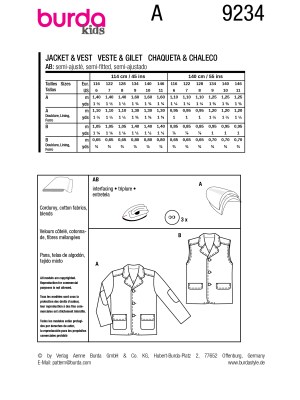 burda kids sewing pattern Boys Jacket & Vest #9234