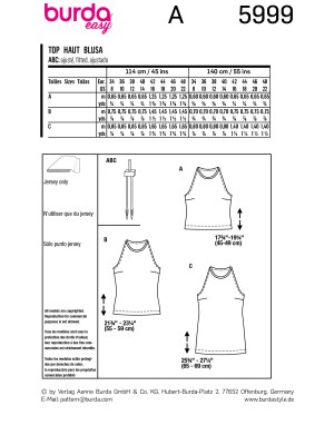 Burda Easy sewing pattern Women Tops #5999
