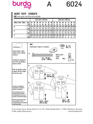 Burda Easy sewing pattern Women Jackets #6024