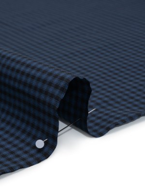 Cotton Shirting – Dark Blue and Black Check Plaid – Deadstock