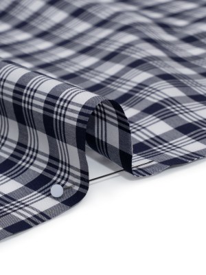 Cotton Shirting – Navy Blue and White Classic Plaid – Deadstock