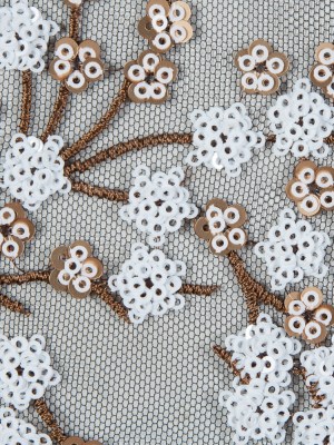 Stretch Net with Sequins – White and Copper Fancy Floral Clusters on Black