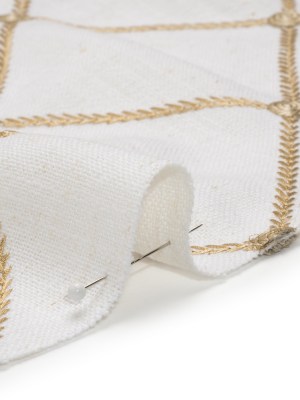 Embroidered Linen Blend Woven – Honey Roses and Diamonds – Tioga Collection