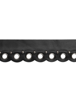 Yaya Han Scalloped Faux Leather Trim with Grommets and Studs – Black and Silver, 1.25″ – Cosplay Collection