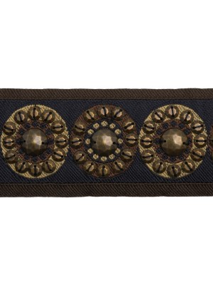 Yaya Han Beaded Jacquard Ribbon Trim – Nairobi Black, Brown and Antique Gold Circles, 1.875″ – Cosplay Collection