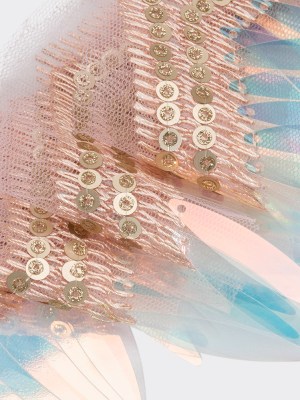 Yaya Han Iridescent Sequin Fringe on Zig Zag Braided Trim – Tango Blue, Gold and Baby Pink, 3″ – Cosplay Collection