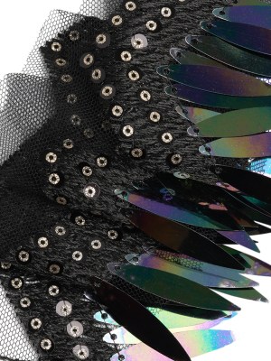 Yaya Han Iridescent Sequin Fringe on Zig Zag Braided Trim – Tango Black, Gold and Oil Slick, 3″ – Cosplay Collection
